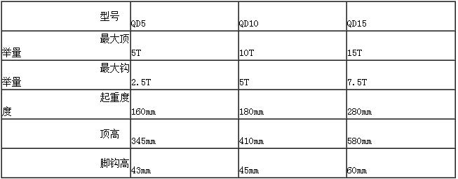 用途:適用于鐵路道軌的輔設、橋梁安裝、及車輛、設備、重物起重之用,具有結構簡單、使用方便、安全可靠、多機并用等優點,是一種應用較廣的起重工具。